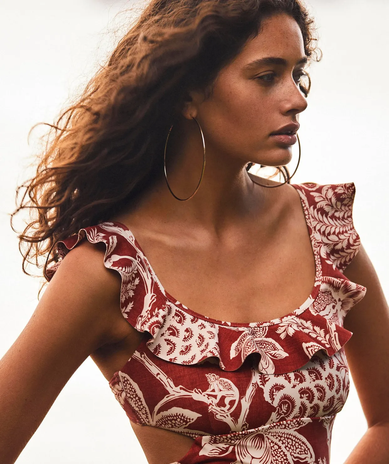 The Inez Cut out Frill One Piece is a new silhouette with a flattering square neck with a bonded frill, cut away sides scooping away to a low back with cross back adjustable straps and ML clip back.