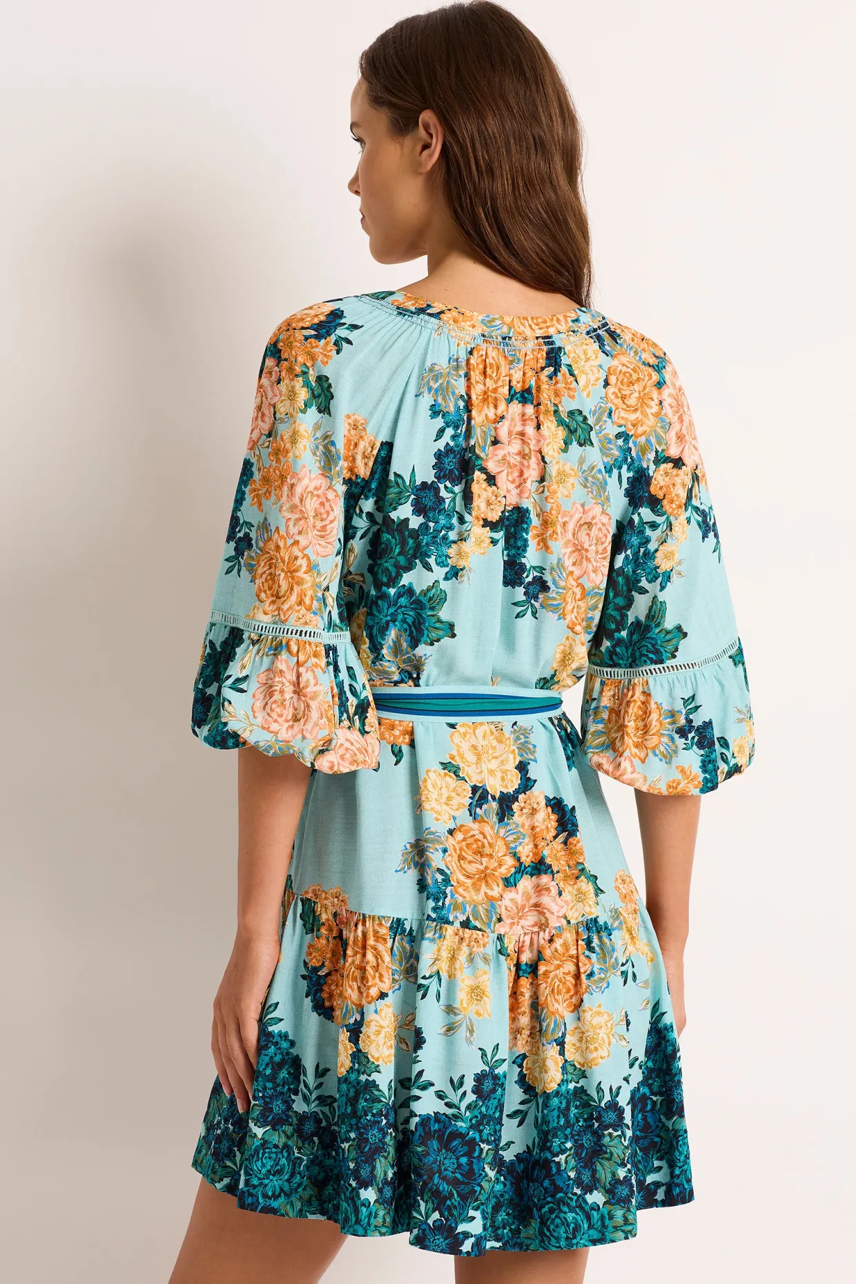 The Carmelita Mini Dress is your new summer staple. Consciously created from environmentally responsible and sustainably sourced Lenzing Viscose for a soft flowing silhouette with border print hem and pretty fagoting trim inserts within sleeve seams.