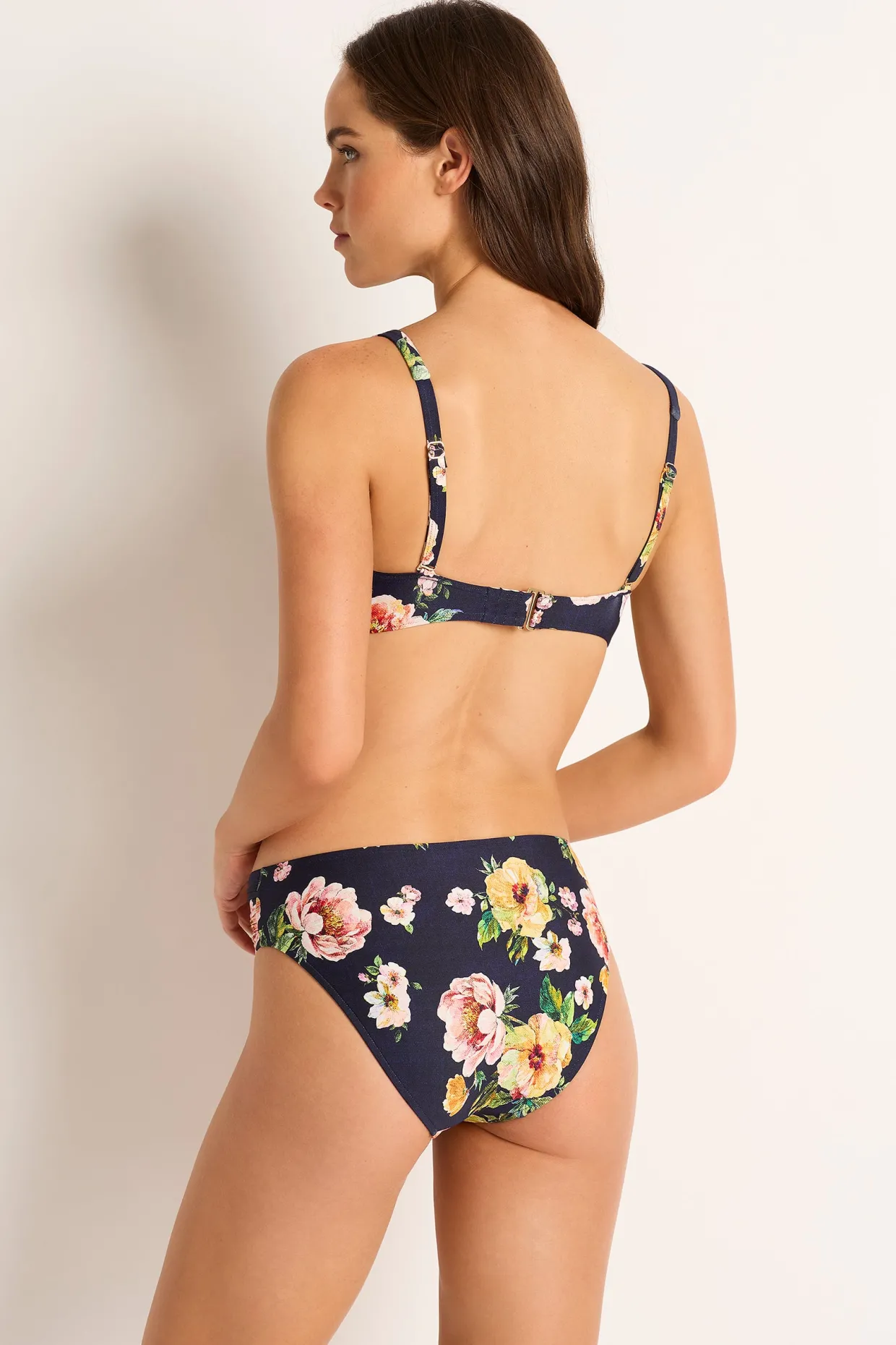 The Juliette Mid Rise Ruched Bikini Pant has become our best-seller with all-round flattering features. Subtle gathered fabric across the front and a leg height to visually elongate the thigh.