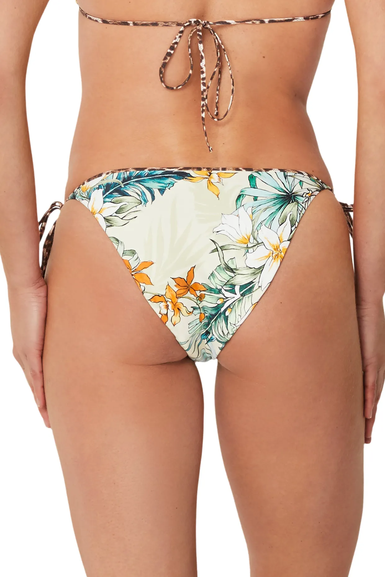 The Plantation Reversible Tie Side Bikini Pant in Oyster from our Summer 2020 Collection. Fully reversible means you can have two looks in one. Wear it Tropical Floral side out or as Animal Print.