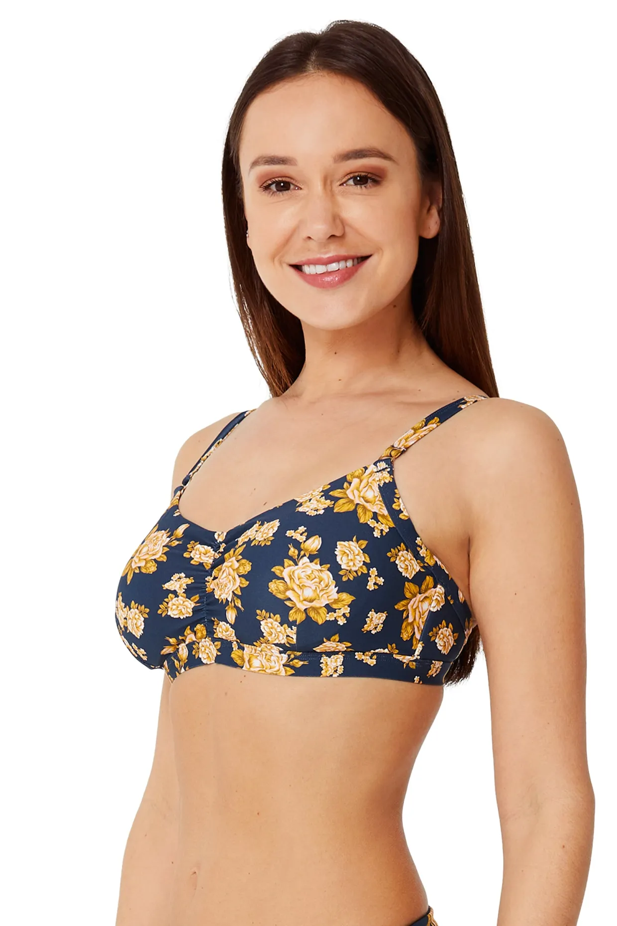 The Rosie DD/E Crop Bikini Top from our Summer 2020 Collection is a pretty Regency inspired English Rose floral, with underwires, powermesh support and adjustable E hook back for a perfect fit.