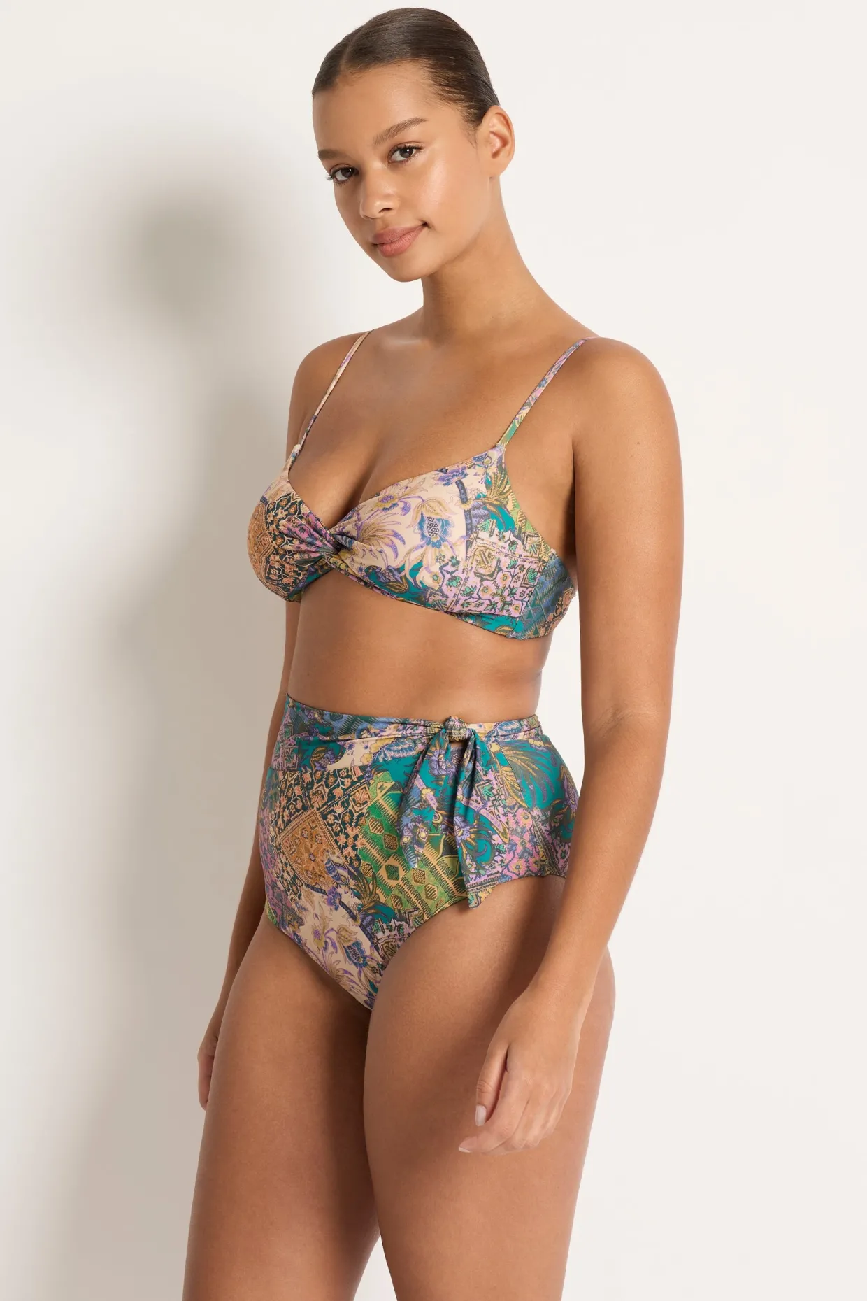 The Willow Twist Front Bralette Bikini Top is our petite version of our best selling multi fit twist for girls that want a bralette shape with narrower straps. Styled for a variety of cup sizes from a B cup to an D. It features a flattering twist at the centre front with over the shoulder adjustable straps and an E hook back with 3 loop positions for the perfect fit.